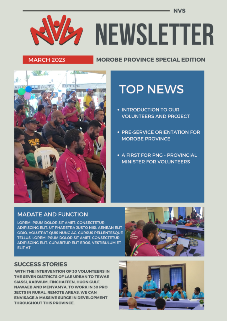 NEWS MEDIA RELEASES Stay Updated PUBLICATION National Volunteer Service of Papua New Guinea Join Our News Articles Lorem ipsum dolor sit amet, consectetur adipiscing elit. Fusce tincidunt nunc venenatis massa sagittis gravida at at arcu. Maecenas tincidunt ornare erat, sit amet eleifend diam porttitor in.